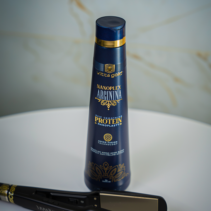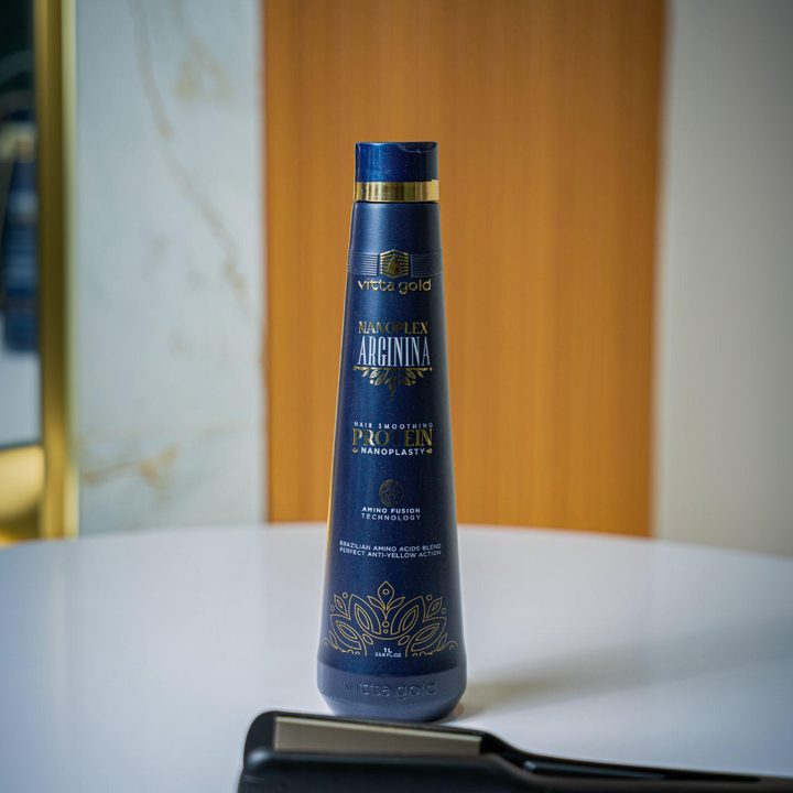 Nanoplex Arginina™ Hair Straightening Nanoplastia Protein 1L est un traitement professionnel haut de gamme conçu pour les salons exigeants qui recherchent performance, sécurité et résultat sensoriel. Formulé pour tous les types de cheveux — y compris cheveux fragilisés, colorés, blonds naturels ou décolorés — il associe la puissance réparatrice des acides aminés à une technologie de lissage avancée pour offrir un lissage brésilien durable, sans formol, et une réparation capillaire en profondeur.