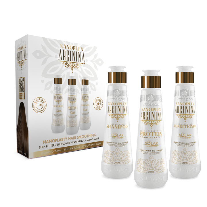 Le Nanoplex Solar™ Intro Set 200ml réunit une protéine de lissage concentrée, un shampooing et un après-shampooing formulés pour travailler en synergie. Sa texture professionnelle allie concentration et légèreté: la protéine de lissage pénètre la fibre pour restructurer et lisser, tandis que le shampooing nettoie en douceur et l’après-shampooing scelle la cuticule pour un toucher soyeux. Conçu pour les salons et l'usage à domicile par des professionnels, ce kit s'adresse aux cheveux sensibilisés, bouclés, ondulés ou frisottés souhaitant un résultat de nanoplastie ou lissage brésilien sans formol, avec une protection thermique et environnementale renforcée.